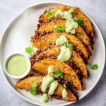 - Serve the tacos with a side of creamy avocado dipping sauce.